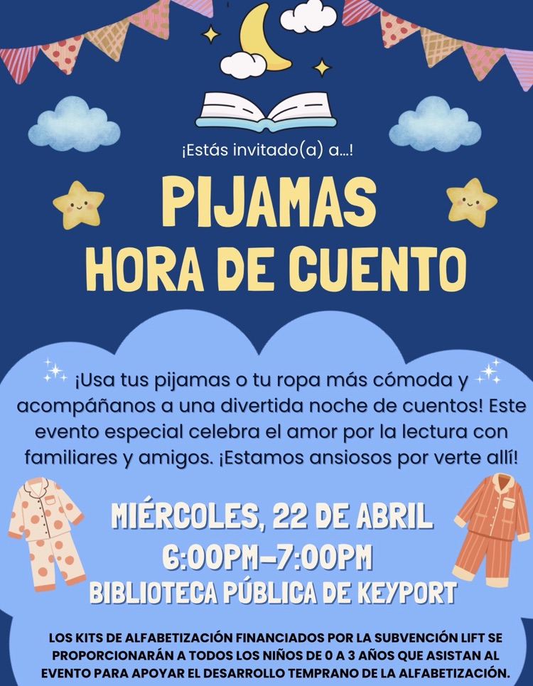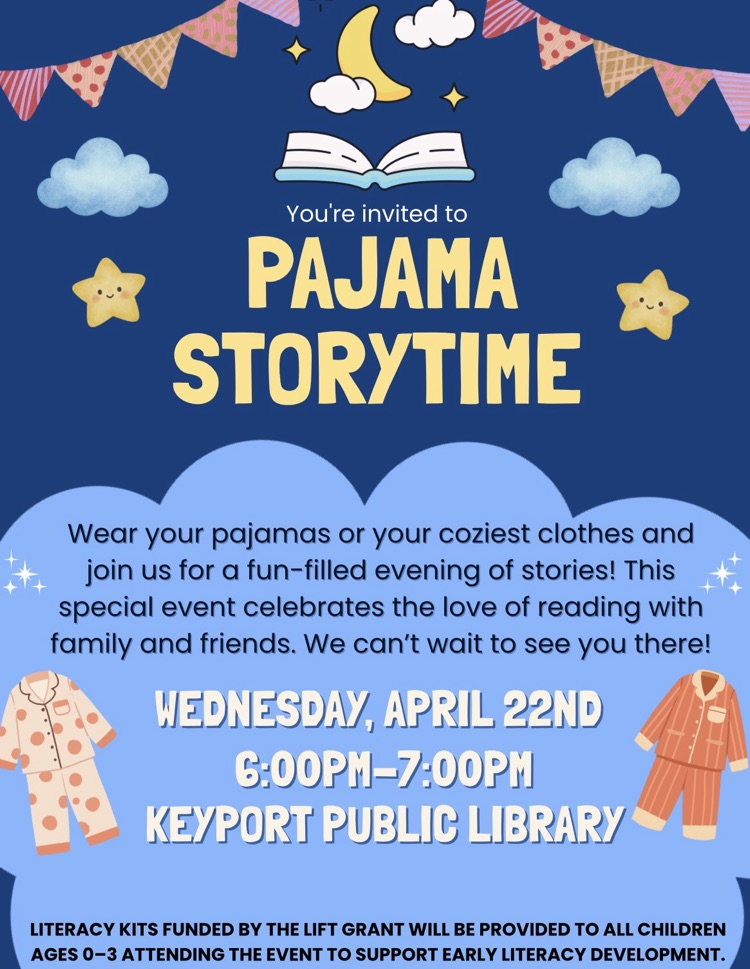 Cozy up in your favorite PJs and enjoy stories read by our KCS teachers at the Keyport Public Library. Children ages 0–3 will receive a free literacy kit, funded by the LIFT Grant, to support learning at home.