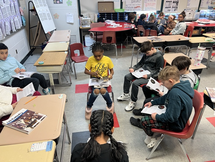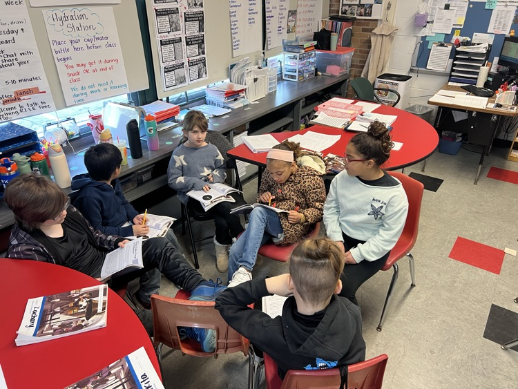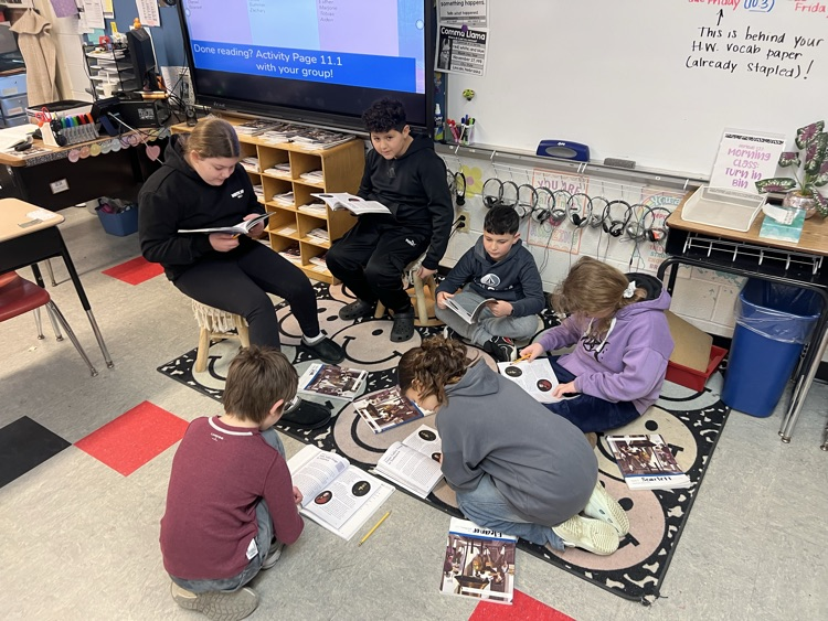 Fourth grade group reading -- We read a chapter today about the end of the American Revolution.