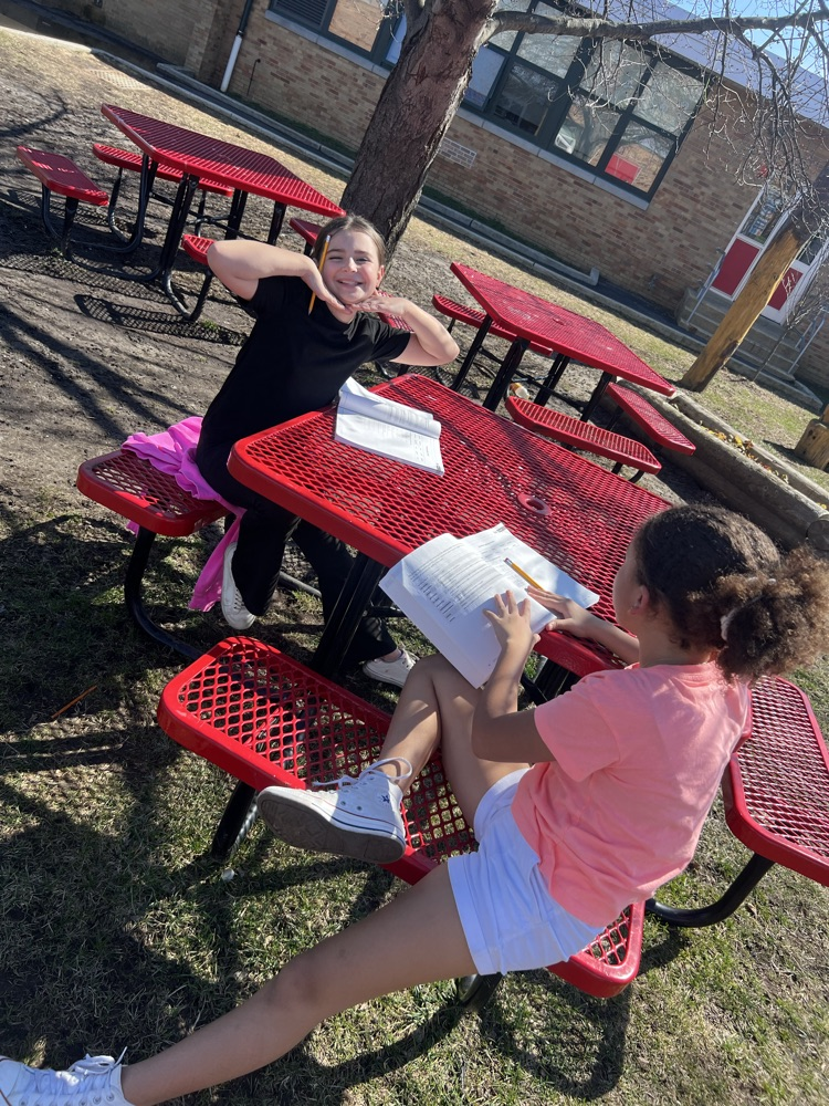 Fourth grade ELA had a great time working outside today in our outdoor classroom. We also hung out on the blacktop and picnic tables, such fun!